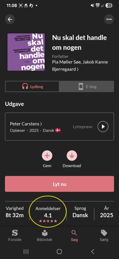 Klikker du dig ind på en bogtitel, fremgår adskillige relevante informationer, eksempelvis oplæsningens varighed, sprog, og hvilket år udgivelsen er fra. Ligeledes fremgår udgivelsens gennemsnitlige karakter.