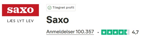 I skrivende stund har Saxo fået mere end 100.000 Trustpilot-anmeldelser og præsteret en samlet score på 4,7 ud af 5 stjerner, hvilket Trustpilot betegner som ‘fremragende’