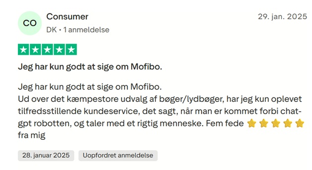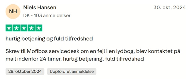 Hvis man isolerer de mest positive anmeldelser, kan man se, at et af de punkter, der går igen blandt roserne, er Mofibos serviceniveau, som – ifølge de fleste forbrugere – er tårnhøjt.