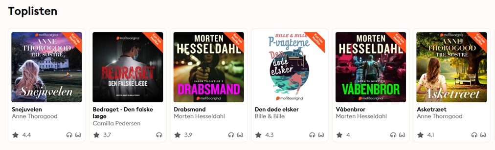 Der kommer hele tiden nye lydbøger i Mofibo Original-segmentet, og de lydbøger, du finder i dette segment, finder du ingen andre steder, hvorfor der er tale om ganske unikt indhold.