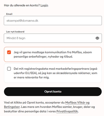 Det tager ikke mange minutter at tilmelde sig Mofibo og dermed få indløst sin potentielle gratis prøveperiode på 30 dage.