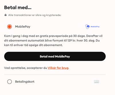 Som du kan se, beder Mofibo dig angive, hvordan du vil betale i trin 2, og vi forstår godt, hvis du tænker: “Jamen hvorfor gør de det, når jeg bliver lovet en gratis prøveperiode på 30 dage?”