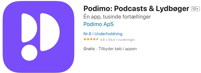 Podimo har udviklet fine apps til både Apple- og Android-enheder, som kan hentes kvit og frit i henholdsvis App Store og Google Play Store.