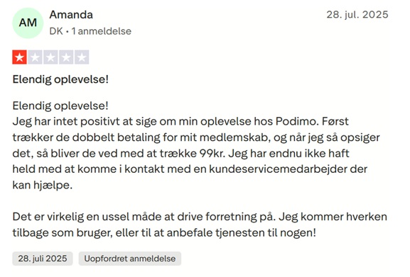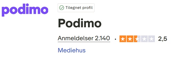 På nuværende tidspunkt har Podimo modtaget mere end 2.100 anmeldelser på Trustpilot og opnået en samlet karakter på 2,5 ud af 5 stjerner, hvilket ikke kan siges at være særligt prangende.