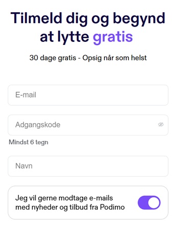 Tilmelding til Podimo består nemlig blot af tre yderst simple trin.