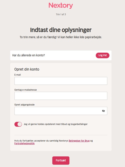 Det tager ikke meget mere end et minut at oprette en profil hos Nextory.