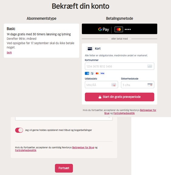 Undlader du at afmelde dig, vil du blive opkrævet et beløb hver måned, indtil du afmelder dig, da Nextory er en abonnementsservice.